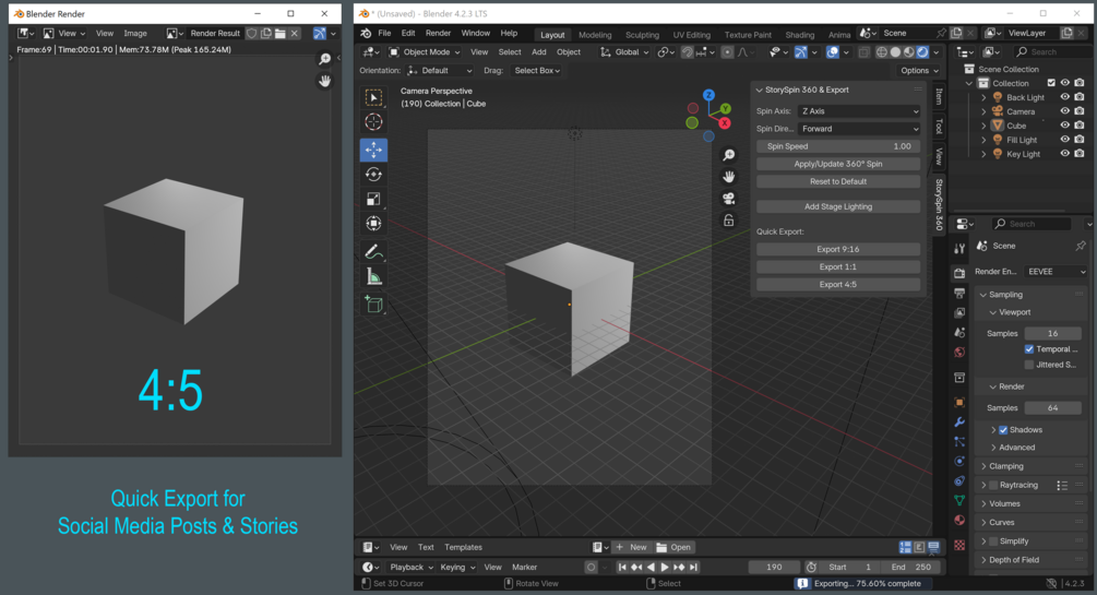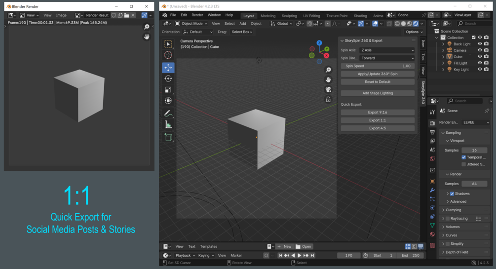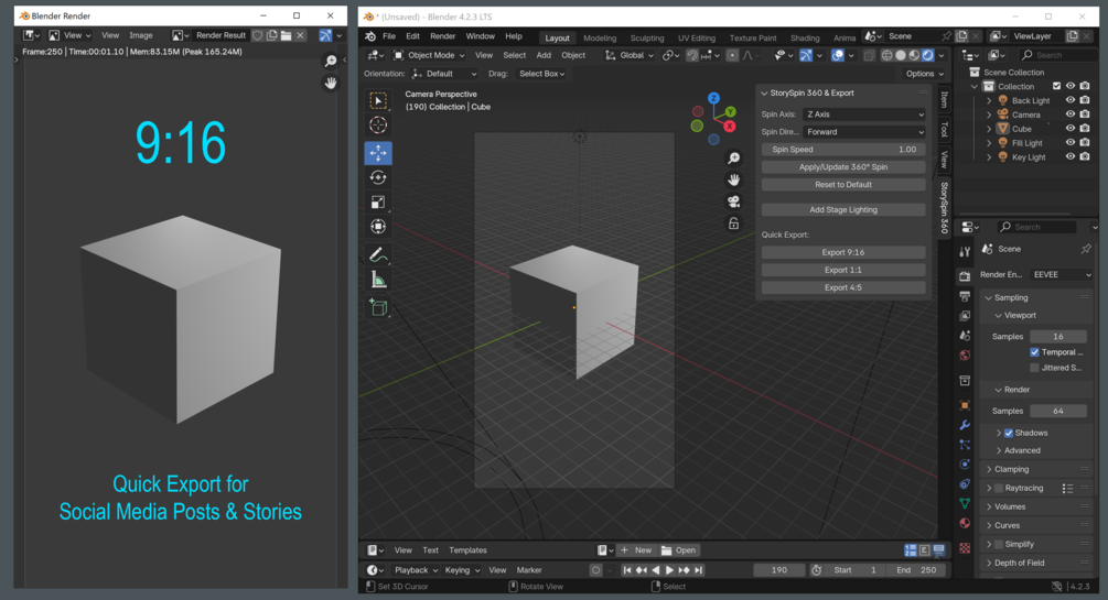 Take your Blender projects to the next level with StorySpin 360, the all-in-one toolkit for creating stunning 360° animations, professional lighting setups, and seamless social media exports. Whether you’re crafting Instagram reels, story animations, or portfolio showcases, StorySpin 360 makes it fast, easy, and efficient.